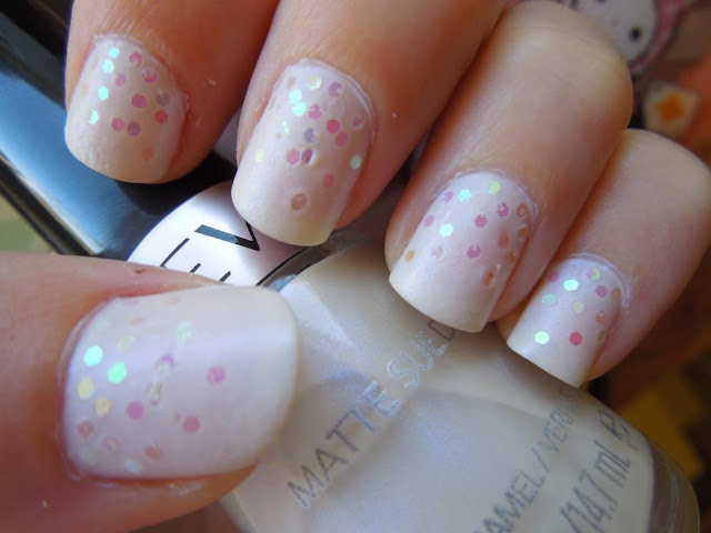 This is Revlon's ' Powder Puff'. It's a matte suede just like 'Emerald City' (in my last post). The difference being that 'Emerald City' only required 2 coats for opacity and 'Powder Puff' required 3. I found that once I put the 3rd coat on it didn't look quite so matte,and the extra coat meant it didn't dry fast like 'Emerald City' did, hence the sheet marks >.< So lesson learnt, with these Revlon matte suedes only do 2 coats! Just like 'Emerald City' however, if you did want to do a shiny fast-dry top coat it would bring out the bit of shimmer in the polish.